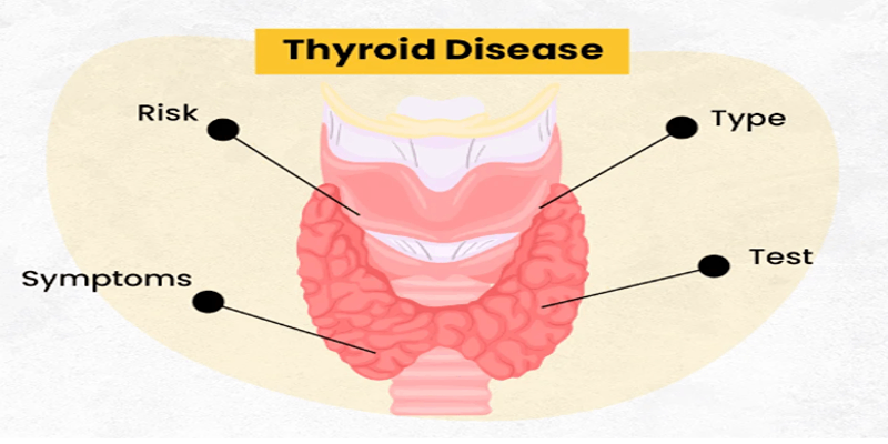 - Description: Thyroid cancer is a type of cancer that starts in the thyroid gland. It is generally less common than other thyroid disorders but can be serious.